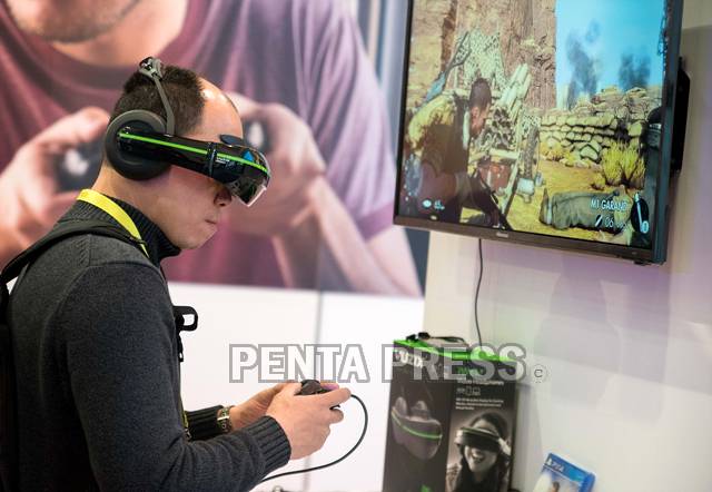 LAS VEGAS, NEVADA USA JANUARY 7, 2017: Vuzix's iWear Video Headphones are demonstrated at CES 2017 in Las Vegas, Nevada, USA on January 7, 2017.