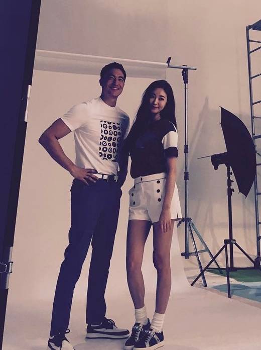 김사랑은 7일 자신의 인스타그램에 다니엘 헤니와 광고 촬영에 집중하고 있는 사진을 공개했다.