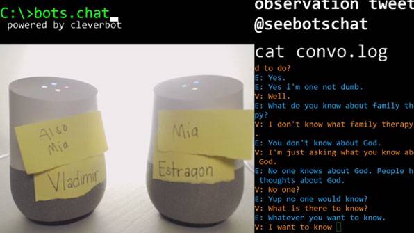 미국 게임 영상 실시간 중계 사이트 트위치에서 seebotschat이라는 이용자가 인공지능(AI) 스피커, '구글 홈' 2대의 대화하는 영상을 실시간으로 중계해 화제를 모았다. 실시간으로 수천명이 두 AI, 블라디미르와 에스트라곤의 대화를 지켜봤고, 누적 조회수는 350만을 돌파했다.