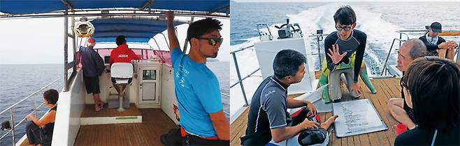 아카섬에서의 다이빙은 10인승 규모의 작은 보트를 이용했다. 편의시설이 잘 갖춰져 있고, 제약 없이 다양한 포인트를 다닐 수 있는 대형 보트의 장점은 없지만, 인원이 적어서 한결 여유로웠다. 마침 호주에서 온 수중 전문 촬영팀도 같은 배에 올랐다. 그레이트 배리어 리프Great Barrier Reef라는 세계적인 다이빙 지역을 갖고 있는 호주에서도 바다에 관심을 보일 정도라니, 케라마 바다의 위상이 새삼 다시 실감이 났다.