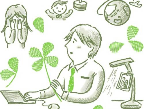 | 일과 가정 사이에서 고민하는 남성을 그린 삽화. 아이들을 생각하면 일찍 귀가하고 싶지만 그럴 수 없는 현실이 남성들을 괴롭힌다. (사진= 아사히신문 캡처) |