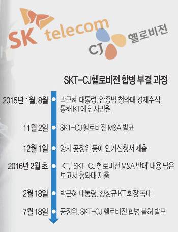 당시 통신업계 최대 이슈였던 SKT-CJ헬로비전 합병에 적극 반대했던 KT는 청와대에 ‘합병을 막아 달라’는 민원을 전달하기로 내부방침을 정했다. 양사는 2015년 11월 2일 인수·합병(M&A)을 발표하고, 한 달 뒤인 12월 1일 공정위와 미래창조과학부, 방송통신위원회에 각각 인가신청서를 제출한 상태였다.