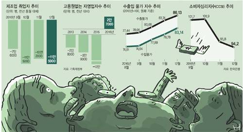 대내외 악재에 휘청거리고 있는 한국경제에 고용 한파가 엄습했다.