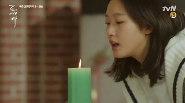지은탁(김고은 분)이 김신을 소환하는 방식에도 그런 의미 부여가 가능하다. 촛불을 끄면 김신이 나타난다(물론 라이터도 무관하다). 그런데 첫 회부터 궁금했다. 왜 불을 '켜면' 나타나지 않고 '꺼야' 나타날까. 왜 생성이 아닌 소멸이어야 할까. 이상하지 않은가? 성냥불을 촤악-하고 그었을 때, 또는 라이터를 취익-하고 켰을 때 '짠'하고 나타나는 그림이 더 깔끔한데 말이다. 굳이 불을 켰다가 다시 꺼야 도깨비가 소환되는 건 소멸에 방점이 찍힌 설정처럼 보인다.