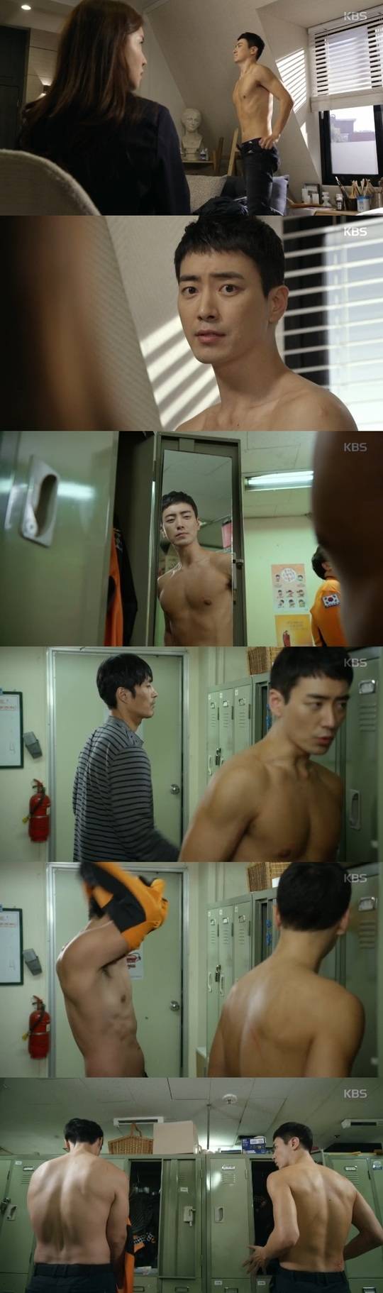 그 과정에서 이준혁의 노출연기가 눈길을 사로잡았다. 이어 강철수는 다른 소방관 대영(박지훈 분)과도 탈의실에서 노출을 감행하는 모습으로 첫방송부터 ‘맨몸의 소방관’ 제목 값을 톡톡히 치렀다. (사진=KBS 2TV 캡처)