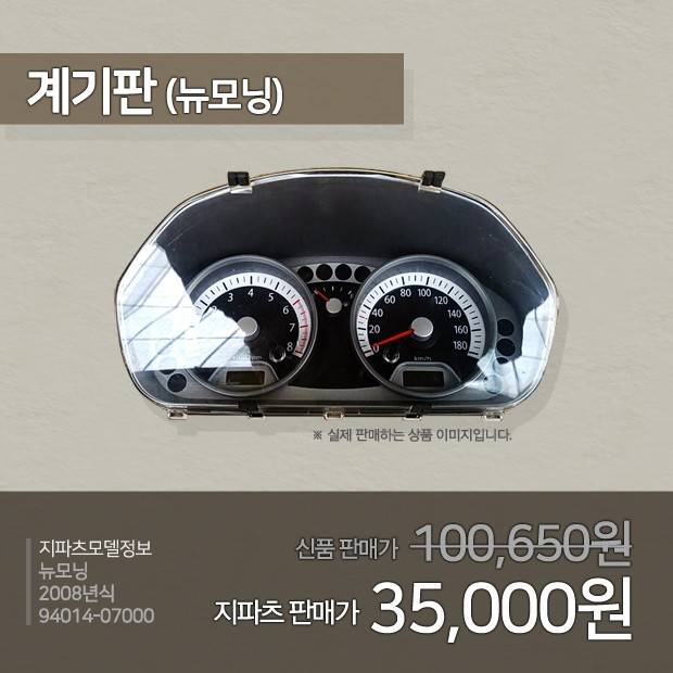 뉴모닝 2008년식 941014-07000 모델의 계기판은 신품 판매가가 100,650원이지만 지파츠 판매가는 35,000원입니다. ※ 실제 판매하는 상품 이미지입니다.