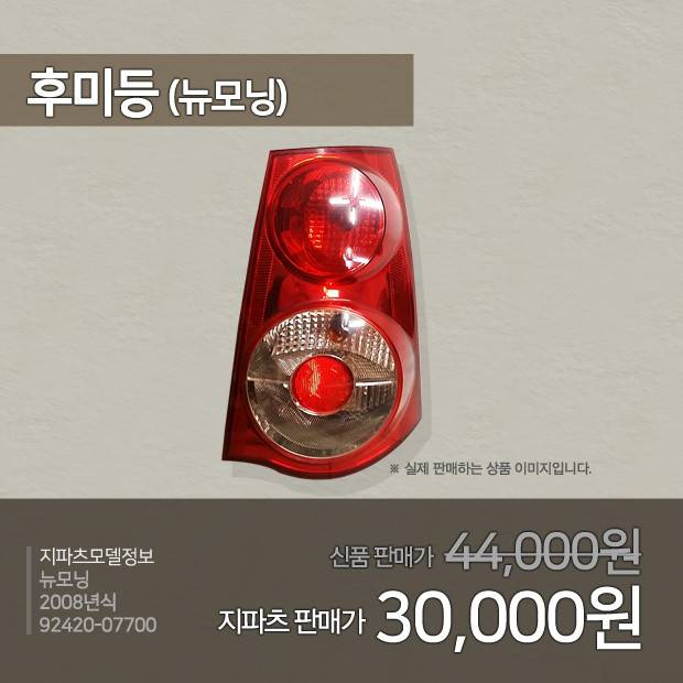 뉴모닝 2008년식 92420-07700 모델의 후미등은 신품 판매가가 44,000원이지만 지파츠 판매가는 30,000원입니다. ※ 실제 판매하는 상품 이미지입니다.