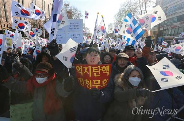 | ▲ 보수단체 "박근혜 대통령 탄핵무효" 보수단체 회원과 시민들이 14일 오후 서울 종로구 대학로에서 박사모 주축으로 구성된 '대통령 탄핵기각을 위한 국민총궐기운동본부' 주최로 열린 박근혜 대통령 탄핵반대 집회에 참석해 대통령 탄핵 기각을 요구하고 있다. |