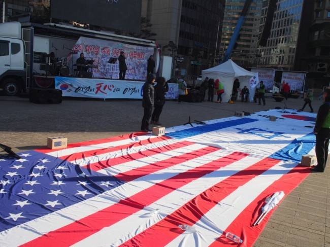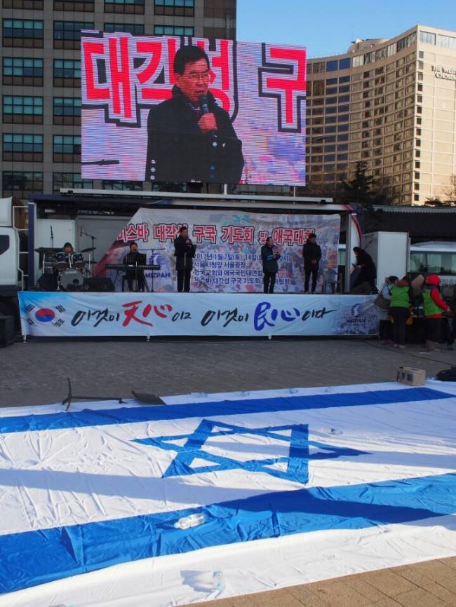 [제 12차 촛불집회][포토]태극기·성조기 이어 이스라엘 국기 등장한 탄핵 반대 집회