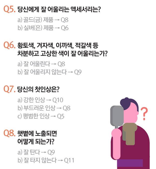 그럼 각각에 따라 어떤 색이 어울리는지 알아볼까요?