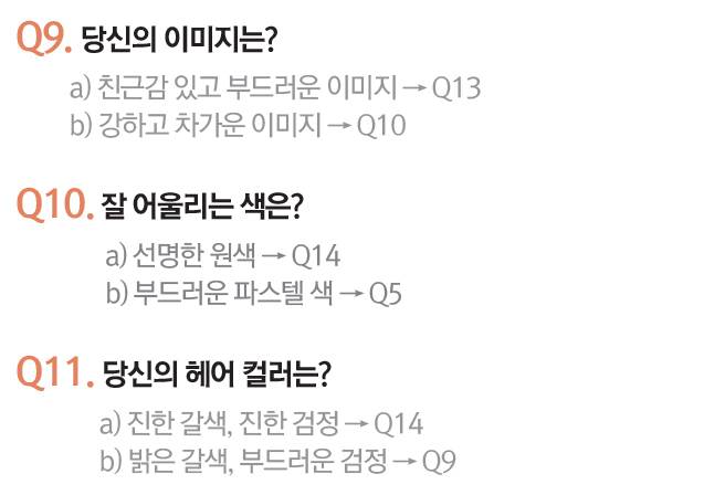 이보다 조금 더 정확하게 아래의 자가 진단법으로 자신의 컬러를 찾아볼까요?