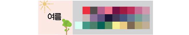 그리고 이 웜톤과 쿨톤은 명도와 채도에 따라 다시 봄, 여름, 가을, 겨울 사계절로 세분화시킵니다.