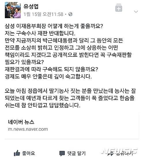 유성엽 의원은 지난 15일 자신의 페이스북(SNS)에 '삼성 이재용 부회장 어떻게 하는 게 좋을까요'라고 운을 뗀 뒤, 구속수사 재판을 반대한다는 입장을 밝혔다.