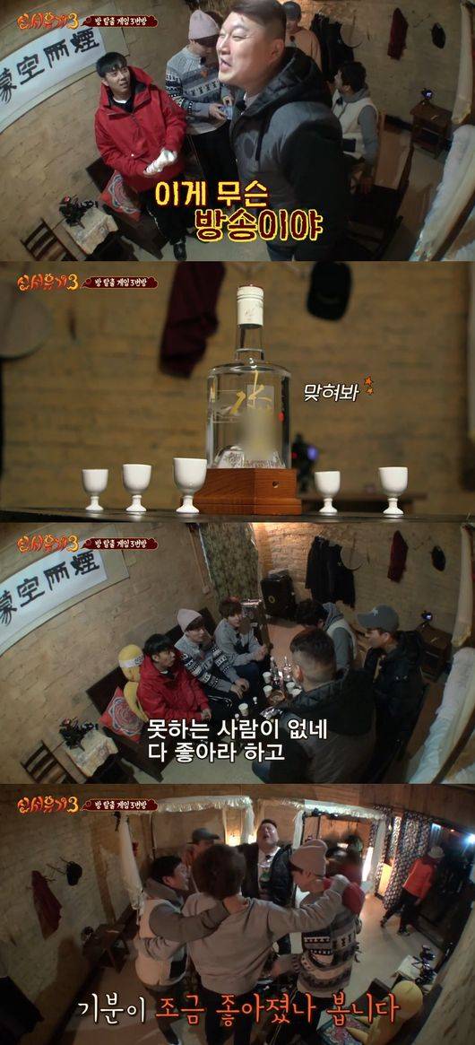 숙소로 돌아온 이들은 방탈출 미션을 받았다. 나 PD 사단이기에 가능한 게임들이 가득했다. 가구 조립방, 매운 떡볶이 먹기 방, 중국 술 먹기 방, 영화 '인터스텔라' 보기 방 같은 지상파에서는 생각할 수 없는 내용의 미션들로 채워졌다.