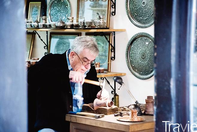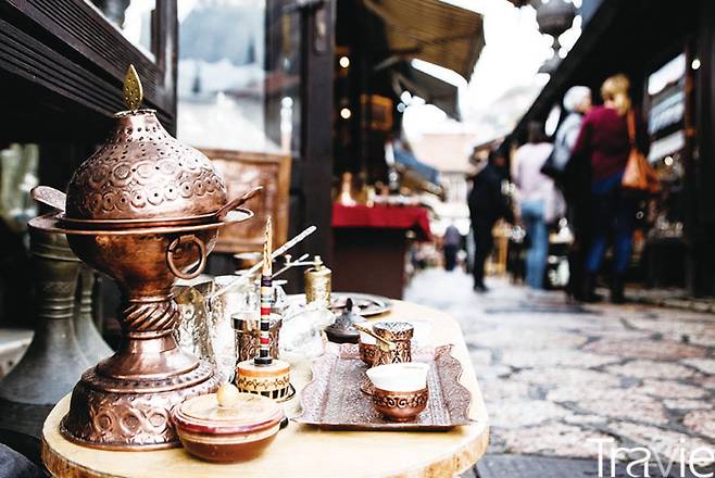 상점과 레스토랑이 도열한 골목 여기저기서 양고기 굽는 냄새, 터키식 커피, 물담배 향이 뒤엉켜 피어오른다. 물건을 사고파는 현지인과 관광객이 뒤섞여 활기가 가득하다. 옛 시절, 수많은 골목에는 같은 종류의 물건을 파는 상점들이 모여 길드가 조성됐는데 화재와 전쟁, 현대화를 거치는 동안 하나둘 사라졌다. 지금은 카잔질룩(Kajandziluk) 골목만이 옛 모습 그대로 남았다. 터키어로 카잔은 냄비를 뜻한다. 구리로 만든 냄비와 그릇 제품들을 내놓은 골목은 관광객으로 발 디딜 틈이 없다. 카잔질룩 골목 인근에는 구시가지의 상징인 세빌리 샘이 있다. 이 물을 마시면 사라예보를 다시 찾을 수 있다는, 믿고 싶은 이야기가 전해진다.