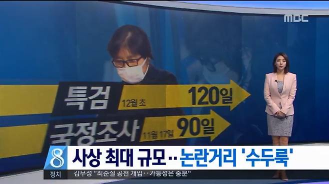 MBC는 탄핵에만 훼방을 놓은 것이 아니다. 11월 18일, MBC는 당시 출범을 준비 중이던 특검에도 공세를 취했다. 박근혜 대통령은 20일 검찰 수사를 거부해 또 다시 국민과의 약속을 어겼고 이 때문에 특검에 대한 국민적 기대감이 높아지던 때였다. MBC는 그런 기대감을 어떻게 해서든 분쇄하고자 하는 의지를 드러냈다.