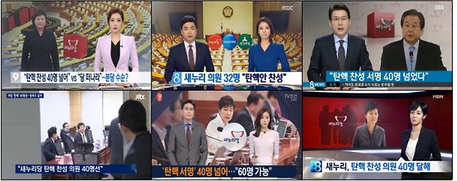 | ▲ 새누리당 탄핵 찬성 인원 40명으로 명시한 방송사들과 홀로 32명 명시한 MBC(11/24) |