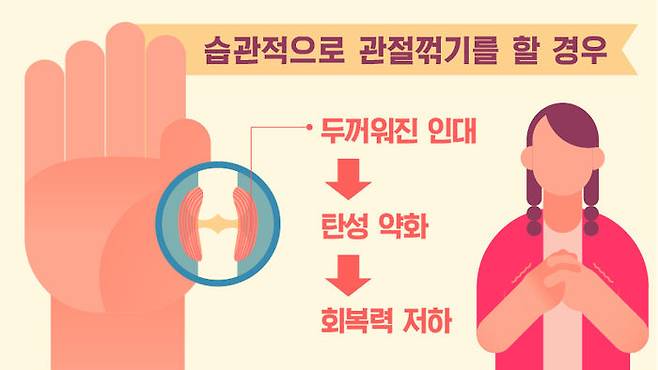이렇게 관절꺾기의 횟수가 많아지면 관절을 많이 쓴 운동선수들이 겪는 문제와 비슷한 증상들이 일어날 수 있다는 겁니다.