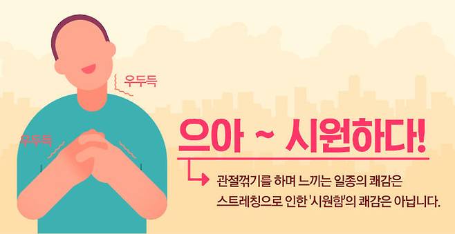이런 관절 꺾기는 몸이 찌뿌드드할 때 자주 하게 되는데요, 왠지 하고 나면 시원한 느낌이 있습니다. 스트레칭이 되는 것 같기도 하고요. 하지만 정말 그런 걸까요?