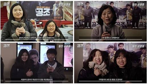 ‘공조’를 관람한 관객들은 “모처럼 부부가 너무 재미있게 영화를 봤습니다!”(god9****), “가족들이랑 재미있게 보고 왔어요”(hgf0****), “현빈의 액션은 볼수록 멋있었고, 유해진은 갈수록 웃김. 둘의 케미도 최고였다”(feel****) 등의 반응을 보였다.