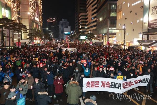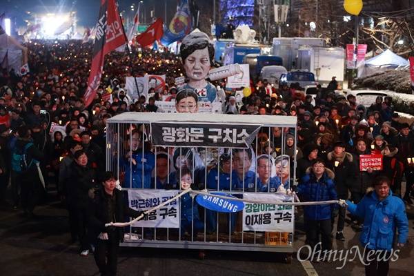 살을 에는 영하의 강추위 속에서도 박근혜 즉각 퇴진, 재벌 총수 구속을 요구하는 촛불시민들의 열기는 뜨겁게 달아올랐다. 박근혜 대통령에게 430억 원의 뇌물을 제공한 혐의를 받고 있는 이재용 삼성전자 부회장 구속영장이 기각되고 처음 열리는 집회에서 시민들의 분노가 폭발한 것이다.