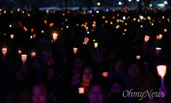 | ▲ 13차 촛불집회 참여한 시민들 ‘박근혜 즉각퇴진 및 조기탄핵 제13차 범국민행동의 날’인 21일 오후 광화문광장에서 시민들이 촛불을 들고 집회에 참여하고 있다. |