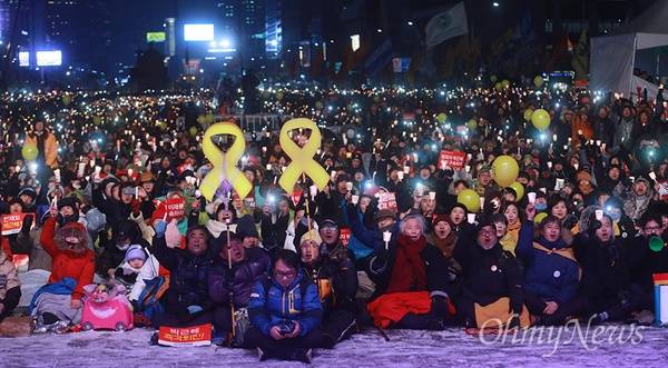 유씨는 이어 "오늘은 눈이 많이 오니까, 왠지 세월호 참사 때 희생된 아이들이 자꾸 생각나서 좀 슬픈 마음으로 참석했다"며 "촛불집회 참여 시민들이 좀 줄었지만 그 열기는 절대 꺼지지 않을 것"이라고 말했다.