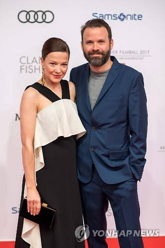 epa05739971 Actress Hannah Herzsprung (L) and her husband Henrik Siemers (R) arrive for the 44th German Film Ball at the Hotel Bayerischer Hof in Munich, Germany, 21 January 2017. EPA/LENNART PREISS