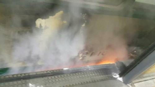 달리는 지하철에서 불이 나 승객들이 대피하는 소동이 벌어졌다.