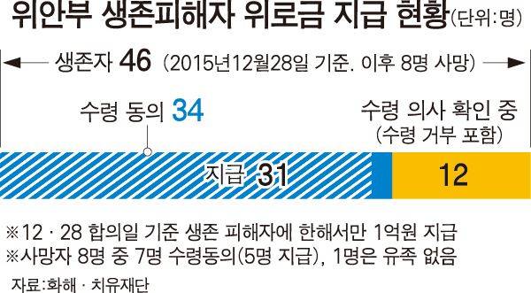무리한 일본 위로금 지급 추진과정에서 피해 할머니들과 가족들은 일종의 모욕감을 느끼는 경우도 있다. D할머니의 아들은 “어머니가 위안부라는 것을 알리는 걸 극도로 싫어하셨는데도 정부가 막무가내로 위로금 지급 설명에 나섰다“고 했다.