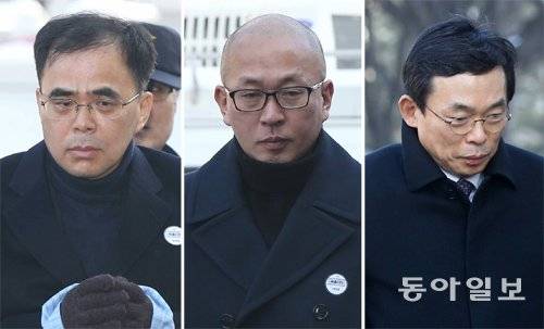 | 헌재 출석하는 증인들 박근혜 대통령 탄핵심판 8차 변론의 증인으로 채택된 김종 전 문화체육관광부 차관과 차은택 전 창조경제추진단장, 이승철 전국경제인연합회 상근부회장(왼쪽부터)이 23일 서울 종로구 헌법재판소에 도착해 대심판정으로 향하고 있다. 박영대 sannae@donga.com·장승윤 기자 |