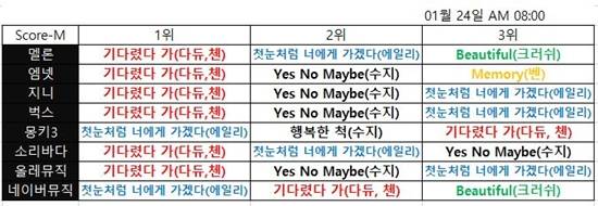 같은 날 몽키3, 네이버뮤직 1위는 에일리였다. tvN '쓸쓸하고 찬란하神-도깨비'의 여파다. OST인 '첫눈처럼 너에게 가겠다'로 1위를 지켰다.