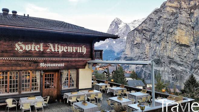 쉴트호른으로 가는 가장 흔한 방법은 브리그(Brig)와 뮈렌(Murren)을 거치는 것이다. 쉴트호른으로 가기 바로 전 정거장인 해발 2,677m의 브리그에는 전망대가 잘 조성되어 있고, 까마득한 절벽 위에 설치된 클리프 워크(Cliff Walk)에선 막간 담력 테스트를 하는 듯한 짜릿함을 맛볼 수 있다. 쉴트호른과 브리그가 산 정상에 마련된 정거장이라면 뮈렌은 고산 중턱에 자리한 소박한 마을이다. 해발 1,645m 평평한 절벽에 아슬아슬하게 자리한 듯 보이는 이곳은 쉴트호른으로 향하는 케이블카의 마지막 환승지다. 블루멘탈(Blumental) 계곡과 알프스 산들이 절경을 이루는 이곳에 있는 호텔 알펜루(Hotel Alpenruh)는 특히 한국인 커플들이 꿈꾸는 신혼 여행지란다. 이유는 굳이 묻지 않아도 잘 알겠다. 창문만 열어도 영화 같은 알프스 장면이 온종일 펼쳐질 테니 말이다.