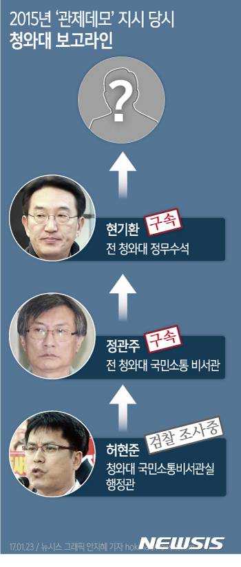 A씨는 24일 뉴시스와 가진 인터뷰에서 관제 데모 지시 실무를 맡았던 청와대 측 직원은 허 행정관이었으며, 집회 개최 요구가 관철되지 않을 경우엔 정관주 비서관이 직접 압박을 가했다고 증언했다.