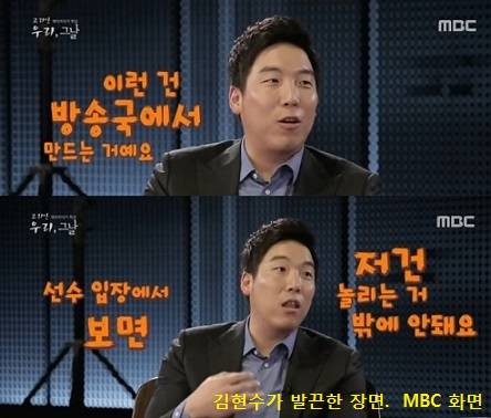 김현수 : 제가 말하고 싶은 거는, (반복해서) 제가 말하고 싶은 거는. 이런 거는 방송국에서 만든다고 말하고 싶은 거예요.