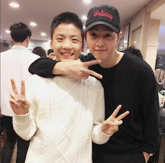 공개된 사진에는 송중기가 김단율에게 어깨동무를 하여 친밀함을 과시하고 있다. 특히 영화 ‘군함도’에서 성인과 아역으로 연기한 두 사람의 훈훈한 비주얼이 시선을 끌었다. 사진을 본 팬들은 ‘두 사람 귀여워요’, 군함도 기대합니다‘ 등 다양한 반응을 보였다.