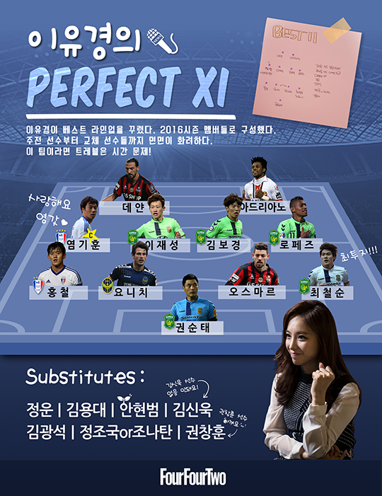 마지막으로 그녀에게 베스트 라인업을 물었다. 그녀는 약 20분 동안 진지하게 고민했다. 지웠다 쓰기를 반복했다. 결국 그녀는 집에서 고민한 후 보내주겠다고 약속했다. 그날 저녁, <포포투>에게 그녀의 베스트 라인업이 도착했다. 분홍색 포스트잇에 '드림팀'이 뭉쳤다. 포메이션은 4-4-2다.