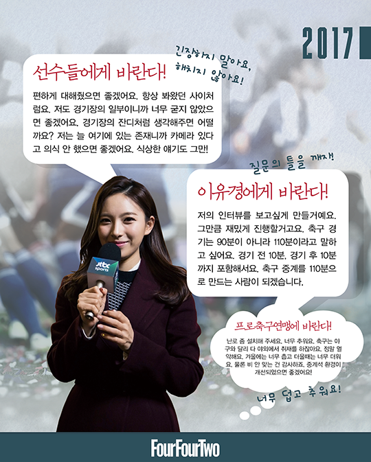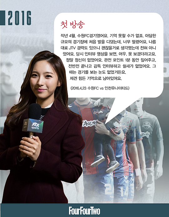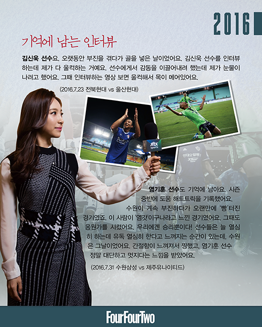 그녀가 스포츠 아나운서가 된 지 딱 1년 째다. 일년 동안 K리그 곳곳을 누비며 축구와 사랑에 빠졌단다. 그녀의 애정을 가늠하고 싶어 <포포투>가 물었다. 그녀가 기억하는 K리그 2016시즌, 기대하는 2017시즌.