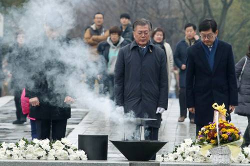 | 故 노 대통령 묘역 참배하는 문재인 전 대표. |