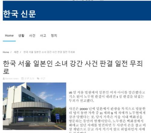 게다가 이 사이트는 지난 16일 개설된 ‘大韓民?民間報道(대한민국 민간보도·korean-news.xyz)’라는 일본어로 된 쌍둥이 사이트와 연계된다. 웹 등록기관에는 일본 후쿠오카 텐진 한 사무실이 주소로 등재됐는데 세계일보 취재 결과 허위인 것으로 확인됐다. 일본 혐한 가짜 뉴스 사이트 내용은 한국 신문과 거의 동일하다. 먼저 일본어로 가짜 뉴스를 만든 후 구글 번역 기능으로 한글 가짜 뉴스까지 만든 것으로 추정된다. 다만 이 사이트는 현재 잠정 폐쇄된 상태다. 심지어 “노무현이라는 한국 남성이 일본 여자아이를 성폭행했다”는 고 노무현 전 대통령을 모욕하는 가짜 뉴스(사진)까지 만들어 배포한 후 일본 내에서 크게 회자되며 문제가 되자 부랴부랴 폐쇄한 것이다.