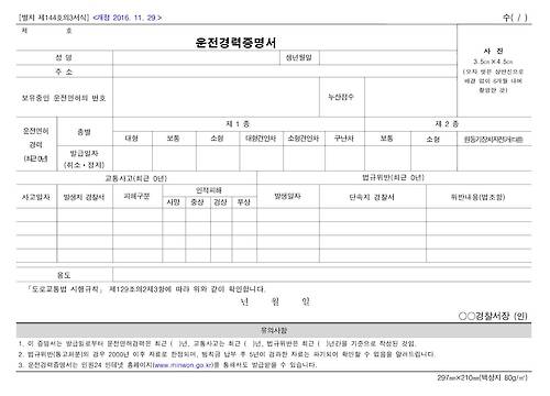 경찰 관계자는 "제도 개선으로 운전경력증명서 방문발급 비용 5억원, 영문 운전경력증명서 발급 및 국제우편 송달비용 3억원이 절감될 것"이라고 말했다.