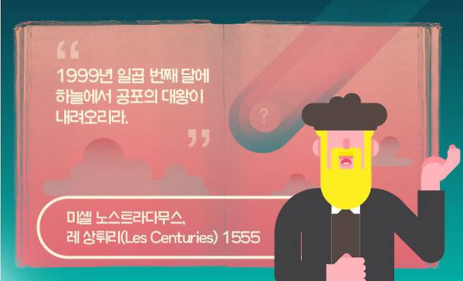 당시 중세 유럽은 음력을 사용했으니, 양력으로는 99년 8월에 대한 예언이었죠. 시기가 절묘하게 맞아떨어져 당시 사람들은 혹시나 하고 불안해하기도 했습니다.