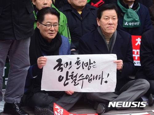 【서울=뉴시스】이재우 기자 = 박지원 국민의당 대표는 4일 청와대 압수수색 불발, 개혁입법 지연 등 책임을 '선(先) 총리 후(後) 탄핵'에 반대한 문재인 전 더불어민주당 대표와 민주당에게 돌리며 "국민은 책임지지 않는 대통령, 지도자를 결코 바라지 않는다"고 공격했다.
