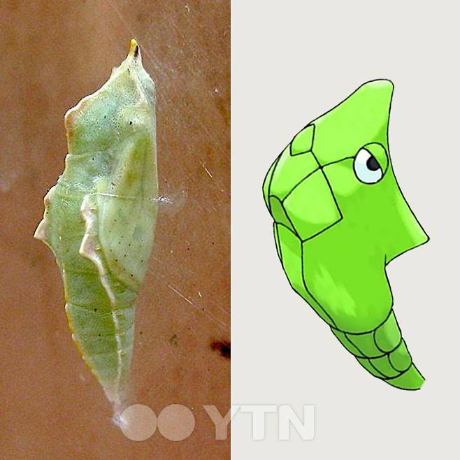 단데기는 배추흰나비 번데기를 똑같이 옮긴 뒤 눈만 그려 놓은 듯하다.