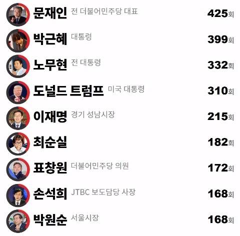 2:) 황, 문 다음 '박근혜'…오유 2위·일베 3위