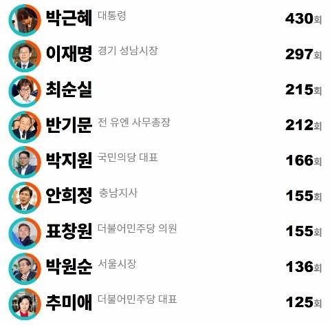 2:) 황, 문 다음 '박근혜'…오유 2위·일베 3위