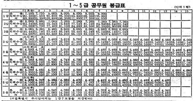 1972년 3월 21일자에 공무원 봉급표가 실렸다. 지금의 9급 공무원에 해당하는 5급을 1호봉의 봉급이 본봉 4180원과 직책수당 1만 3120원을 더해 1만 7300원이었다. 현재의 5급인 3급을 1호봉의 봉급은 2만 8000원이었다. 올해 9급 공무원 1호봉의 수당을 포함한 실수령액은 180만원가량, 5급 1호봉은 295만원가량 되니 대략 100배 이상 오른 셈이다. 당시 최고 인기 직업이던 은행원의 첫 월급이 3만~4만원(고졸)이었다. 번듯한 직업의 월급이 이 정도이고 일반 공장 근로자의 월급은 몇천원에 불과했다.