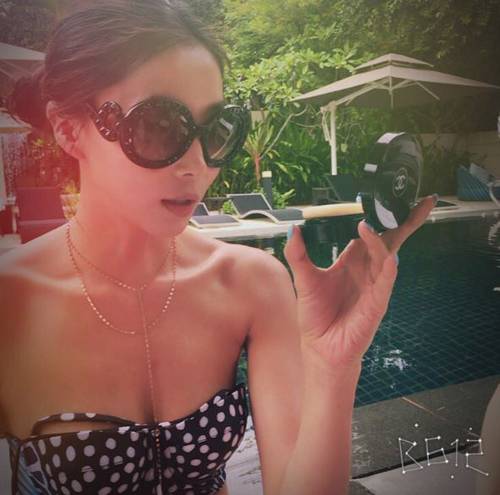 ★ 배우 오윤아는 지난 8일 SNS를 통해 야외 수영장에서 휴가를 즐기는 모습을 공개했다. 사진 속 오윤아는 도트 무늬의 비키니와 화려한 목걸이를 매치해 우아한 매력을 더했다.