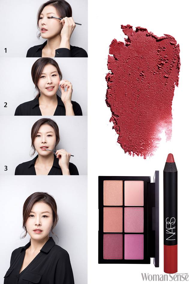 성숙하고 차분해 보이는 인상을 연출하되 스모키 메이크업과는 차이를 둘 것.