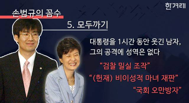 손 변호사는 2월14일 14차변론에서 ‘김수현 녹음파일’을 검증하자고 요구하며 ‘막판 반전 카드’를 노렸지만, 정작 이 녹취록에는 박 대통령이 최순실씨에게 얼마나 의존적인지가 드러나 있어 도움이 되기는커녕 불리하다는 평가가 많습니다. 대리인단들이 녹취록 검증을 요구하는 것은 시간끌기 전략이라는 분석이 나오는 이유입니다.
